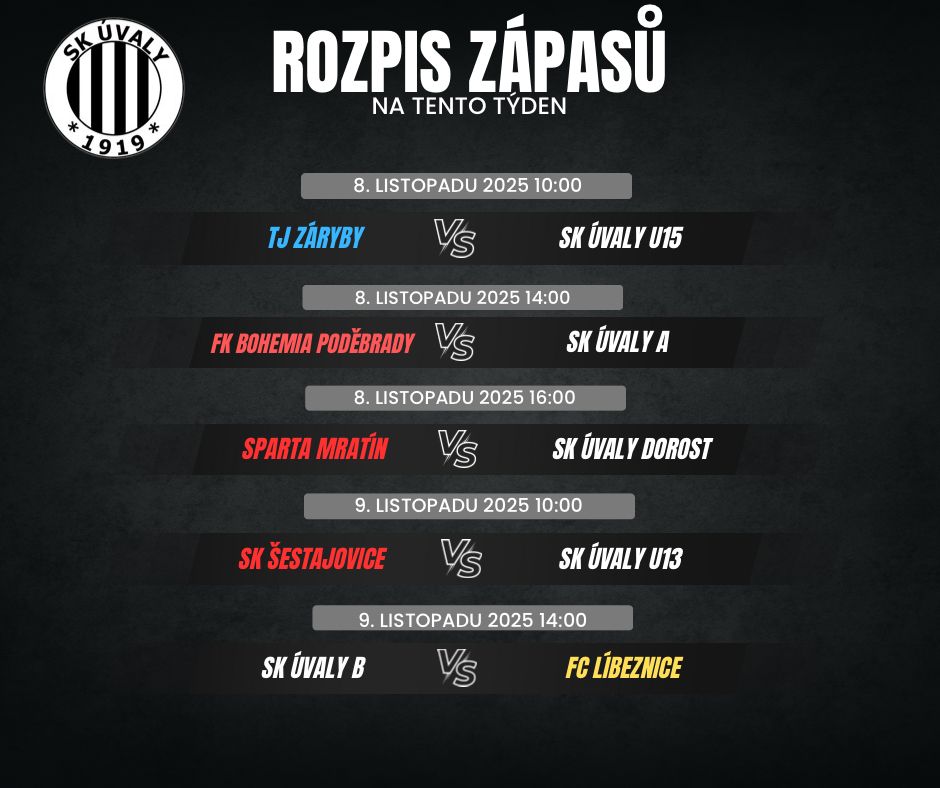 Rozpis zápasů na tento víkend -Pozor zápas „Béčka“ je přeložen na hřiště v Mochově!!! Posted on 8. 11. 20258. 11. 2025 by Philip Kosnar Přečteno: 9